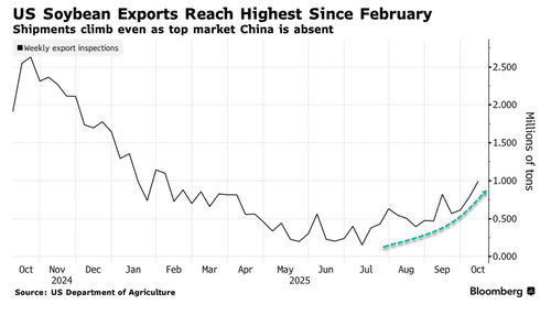 - U.S. Soybean Exports Show Signs Of Recovery – Even As China Pivots Elsewhereby Tyler Durden on October 15, 2025 at 6:10 pm